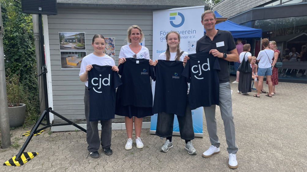 Am Sommerfest war es endlich so weit. Der Förderverein konnte der Schule 50 dunkelblaue T-Shirts mit dem neuen CJD – Logo überreichen.